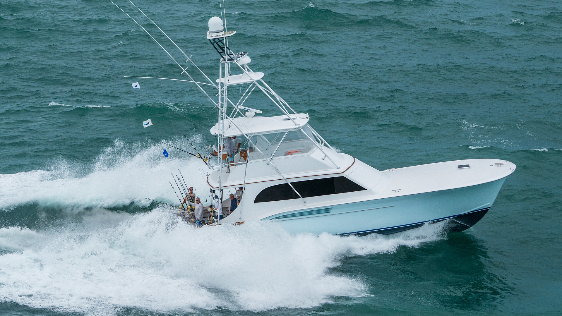 55′ Magic Moment Back Overview Photos Specs Custom Hull # 27 Splash Date 2000 Boat Name History: Oil's Well, Magic Moment Exterior Gallery Action Gallery Specs Length 55' 6" Beam 17' 2" Draft 5' 1" Water Line 50' 4" Cockpit Area (sq. ft.) 173 Dry Weight (lbs.) 61,000 Fuel Capacity (gal.) 1,000 Water Capacity (gal.) 150 Power Engine(s) Twin Cat® Model 3412E Horsepower 1400 x2